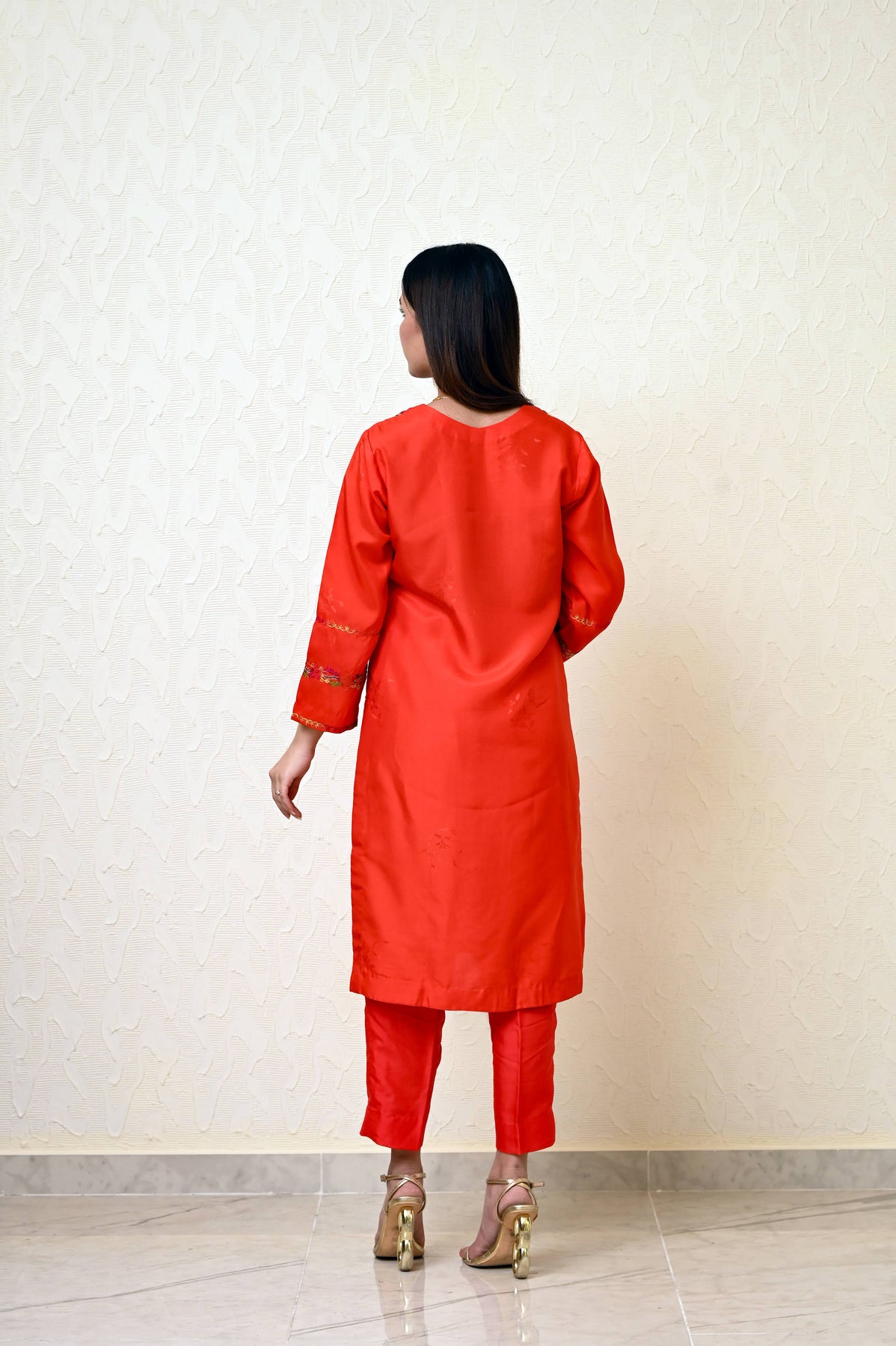 Perfect for festive events or special occasions, this suit combines luxury fabric, fine embroidery, and a timeless style.