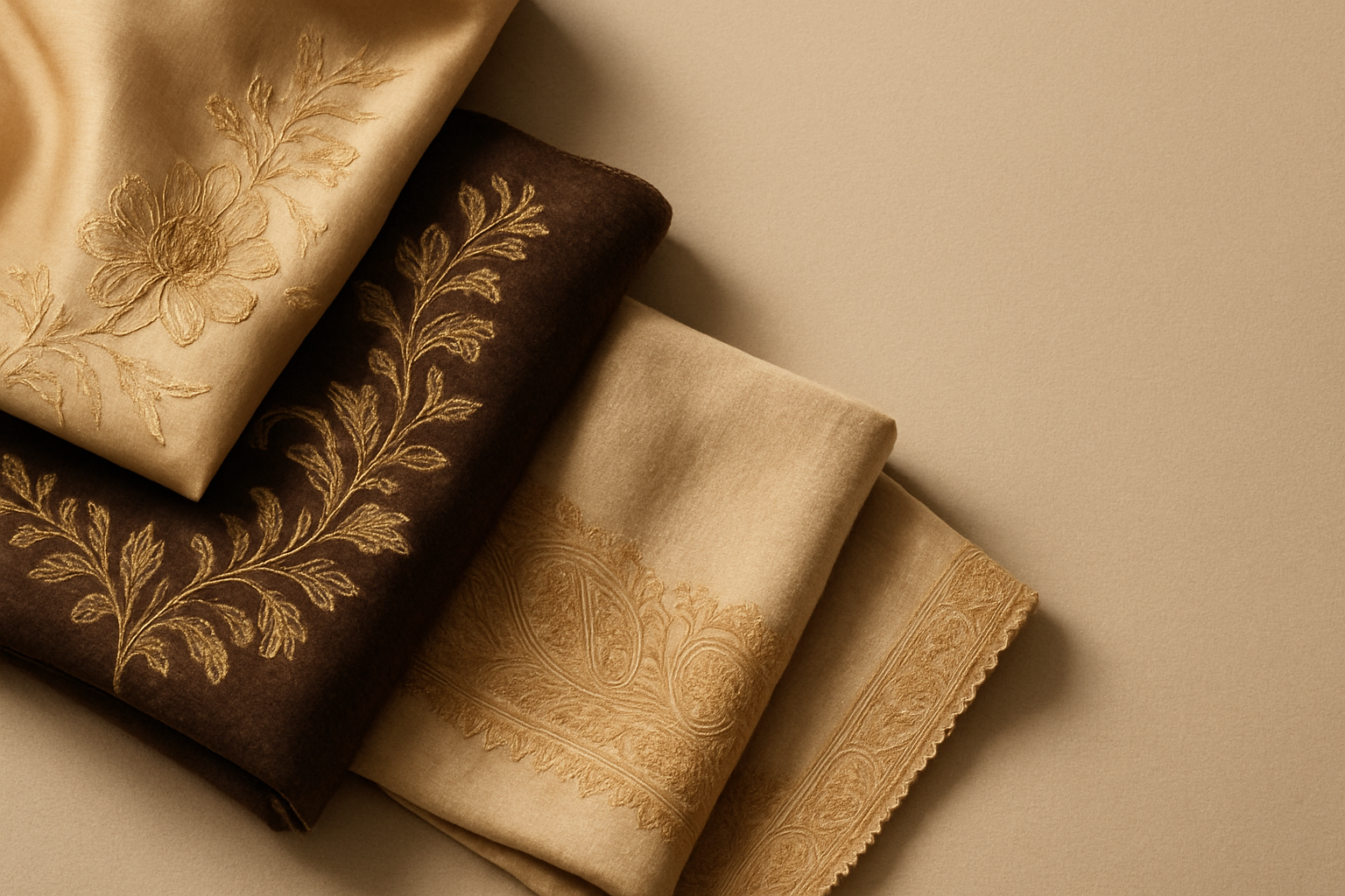Where heritage meets luxury — handcrafted fabrics, rich embroidery, and modern silhouettes by Promenades Studio.